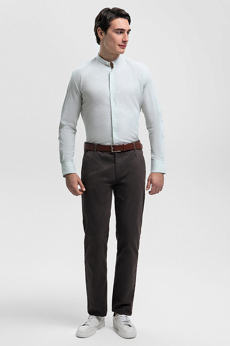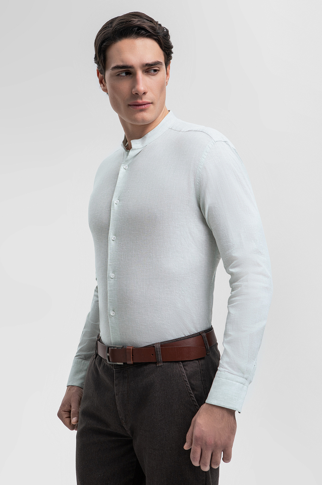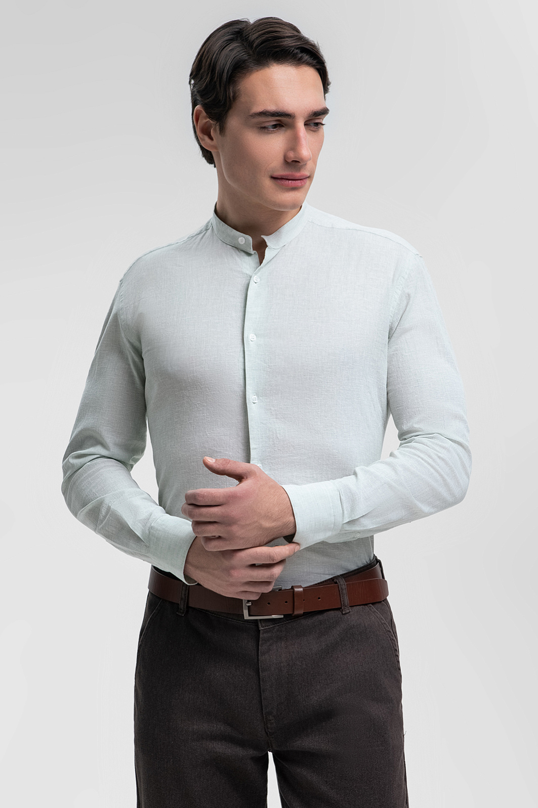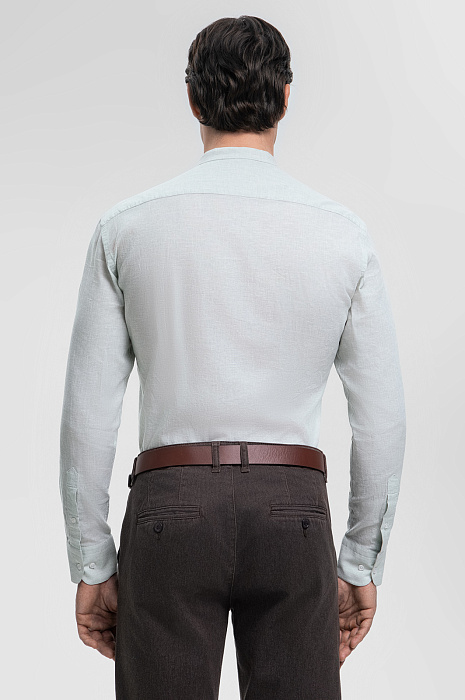 Для создания выразительной сорочки дизайнеры KANZLER выбрали австрийскую ткань Getzner – воплощение премиального качества. Материал из натуральных волокон льна и хлопка гарантирует легкость и естественный воздухообмен в сочетании с непревзойденной долговечностью. Воротник-стойка — яркий акцент, придающий образу индивидуальности. Светло-зеленый оттенок выглядит свежо и благородно. Сорочка подчеркнет достоинства фигуры и подойдет для создания как деловых, так и кежуал образов. Параметры модели: рост 190, 103-83-99 Размер на модели: 40