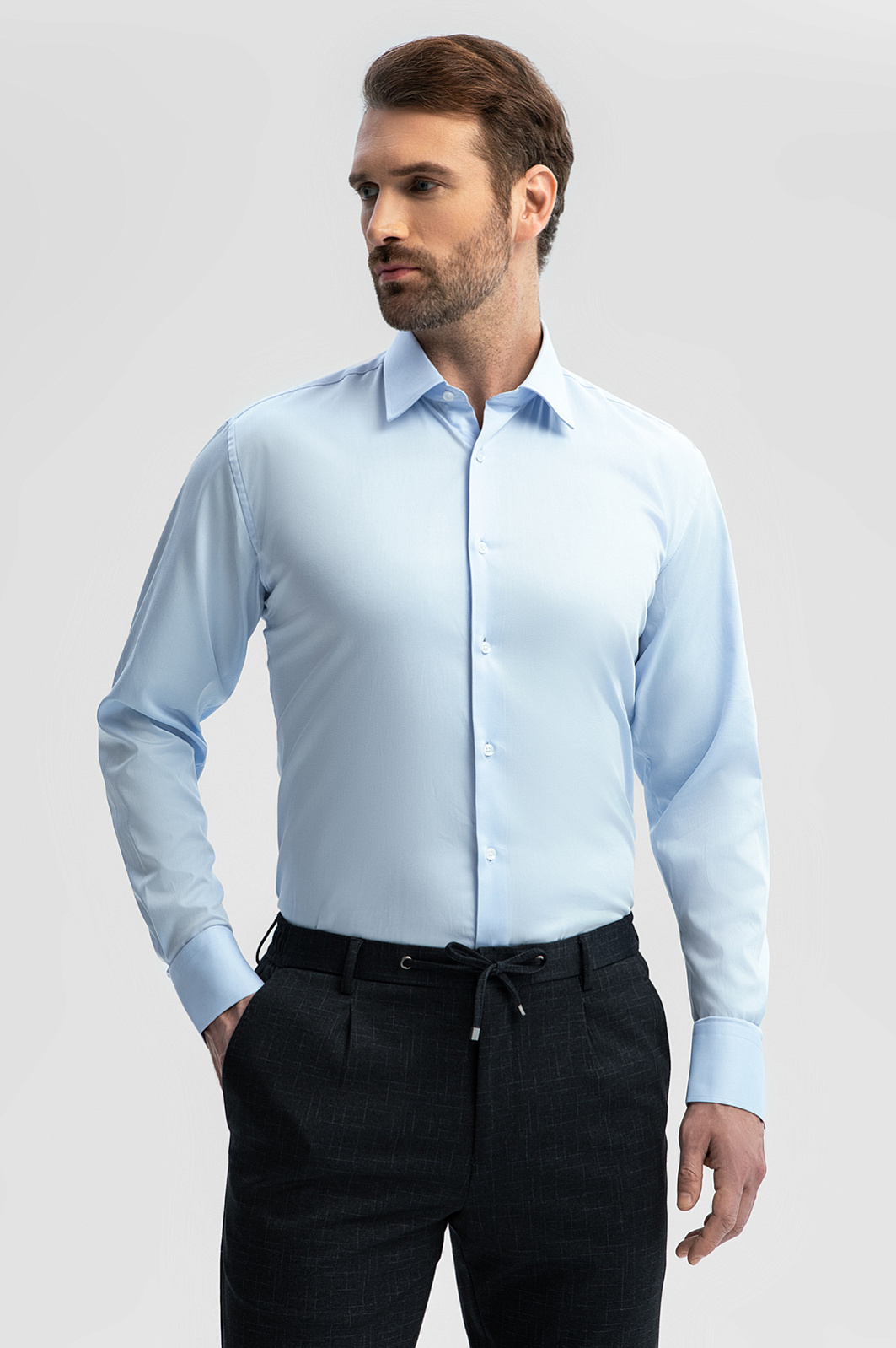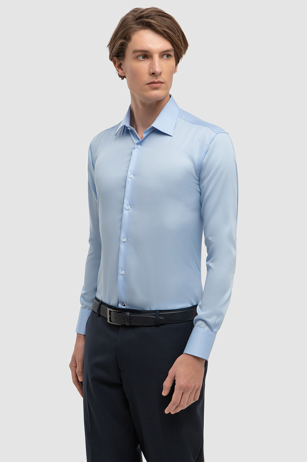 Безупречный крой и лаконичный дизайн делают голубую сорочку KANZLER идеальным выбором для деловых встреч, офисных будней и важных мероприятий. 100-процентный натуральный хлопок гарантирует комфорт в любую погоду. Материал мягко облегает тело, обеспечивая воздухопроницаемость, и сохраняет форму после множества стирок. Приталенный крой – это баланс между строгостью классики и повседневным комфортом: он формирует аккуратный силуэт и подчеркивает достоинства мужской фигуры, не сковывая движений. Сорочка в классическом голубом оттенке – основа делового гардероба, которая сохранит свою актуальность на протяжении многих сезонов. Параметры модели: рост 189, 102-80-99 Размер на модели: 40