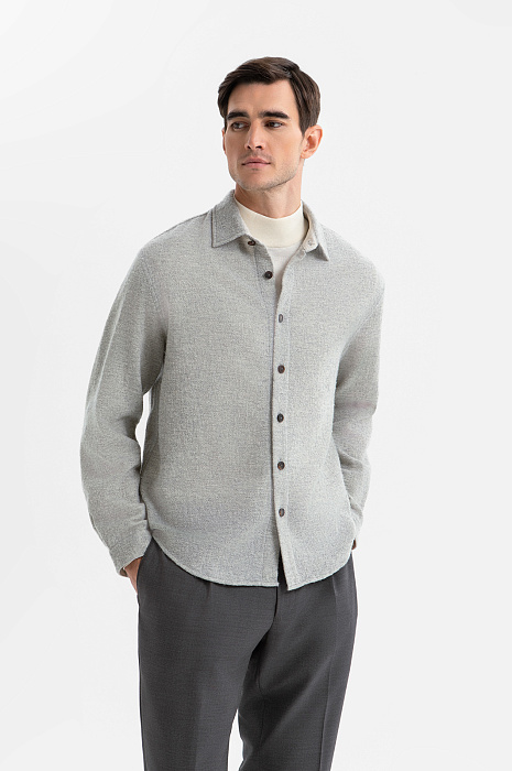 Сорочка KANZLER из чистой шерсти из лимитированной коллекции — самодостаточная вещь, которую хочется носить снова и снова. Она позволяет мужчине выразить утончённый вкус через сдержанную роскошь и чистые лаконичные линии. Её светлый серо-бежевый оттенок напоминает зимний рассвет, который создаёт ощущение спокойствия и уюта. Контрастные пуговицы служат аккуратным стильным акцентом. Закруглённые края низа предоставляют возможность носить сорочку навыпуск для непринуждённого стиля или заправленной — для элегантного, продуманного образа. Модель выполнена из мягкой гипоаллергенной 100-процентной шерсти, которая дарит телу тепло, комфорт и заботу. Параметры модели: рост 192, 101-76-97 Размер на модели: M
