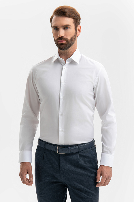 Белая хлопковая сорочка KANZLER придаст решимости и уверенности, когда Вы окажетесь в центре внимания или наступит время начинать новое дело. Лаконичный дизайн в духе современной классики легко подстраивается под любые обстоятельства — от деловых встреч до торжественных приёмов. Удобный универсальный крой не сковывает движений и подходит для любого типа фигуры. Сорочка сшита из натурального хлопка (100%). Легкий гипоаллергенный материал не раздражает даже самую чувствительную кожу и сохраняет свежесть и комфорт с утра до вечера. Параметры модели: рост 189, 102-80-99 Размер на модели: 40