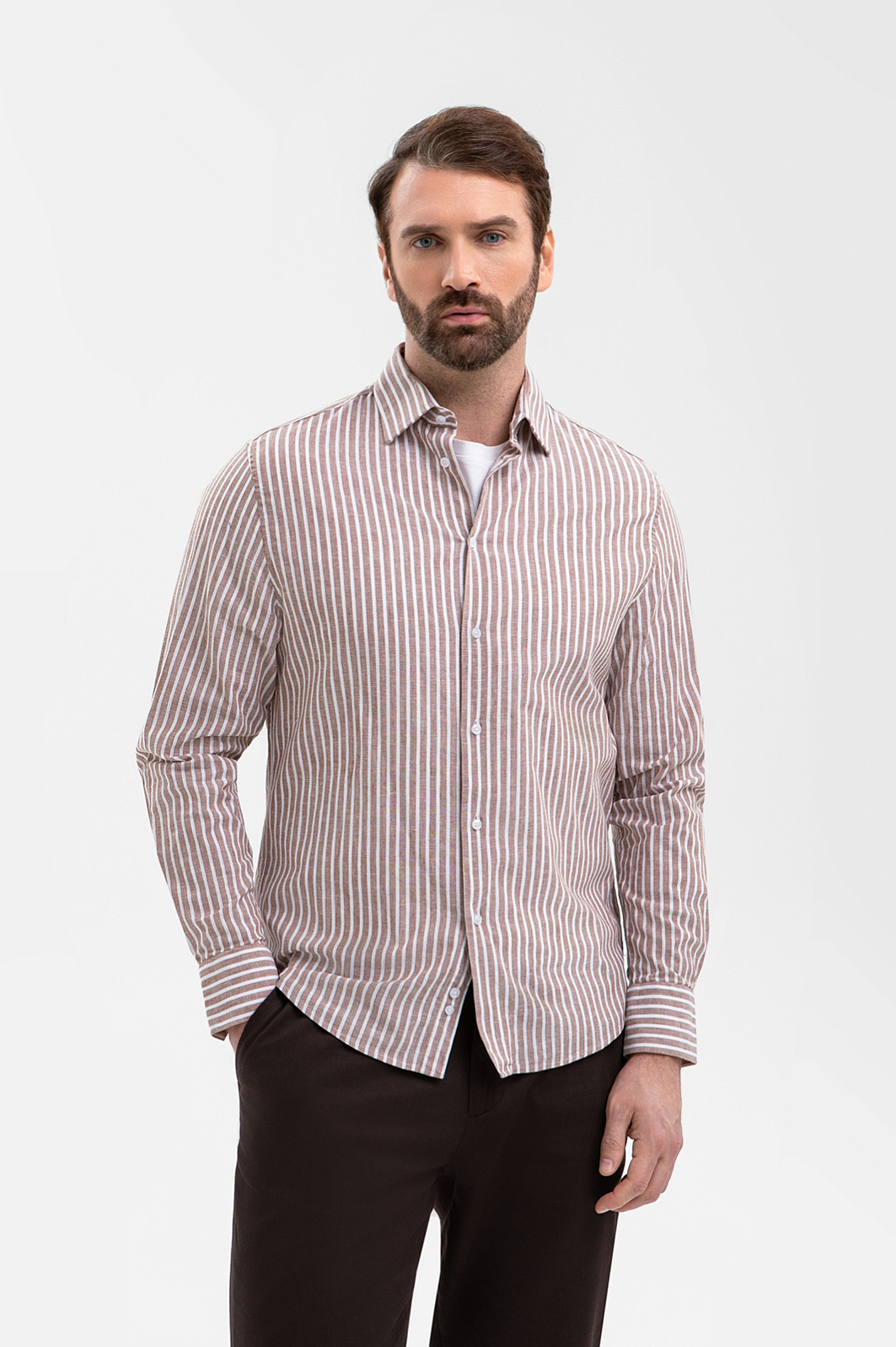 Сорочка из хлопка и льна, цвет коричневый, цена 8 990 руб., код 270877 - купить в Самаре в интернет-магазине KANZLER
