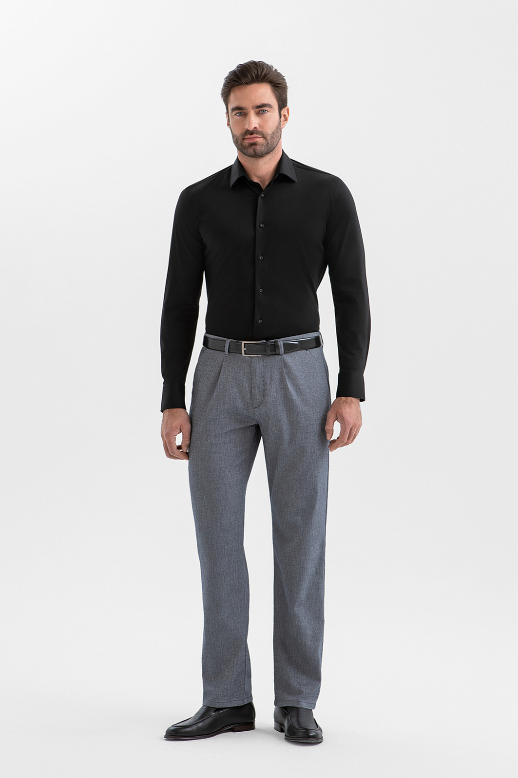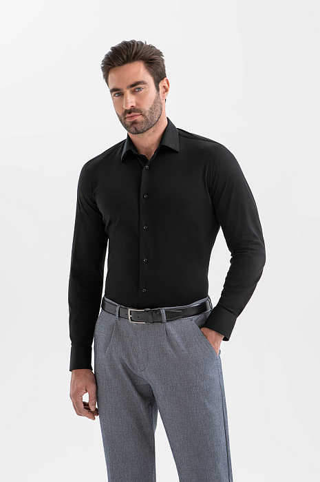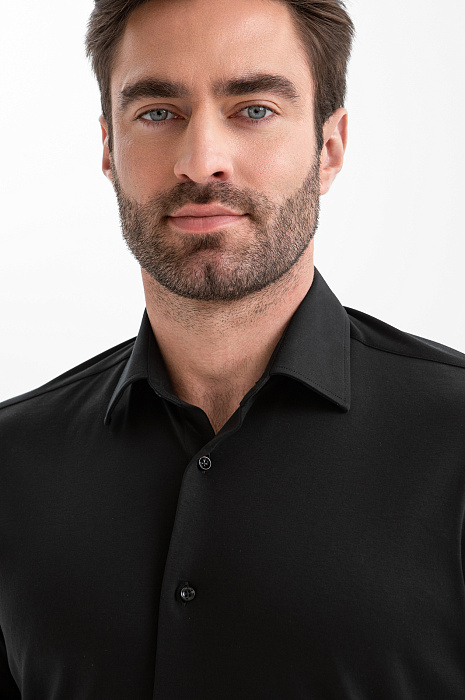 Чёрная сорочка KANZLER из хлопкового трикотажа формирует ощущение уверенности и порядка в образе. Монохромная эстетика идеально вписывается в минималистичный стиль, но оставляет возможность и для спонтанных сочетаний. Слегка зауженный крой придаёт образу изящество и подчёркивает осанку. Благодаря трикотажной фактуре сорочка выглядит менее формально, чем классическая рубашка. Эластичный материал из гипоаллергенного хлопка мягко облегает тело, позволяет коже дышать и обеспечивает комфорт в течение всего дня.