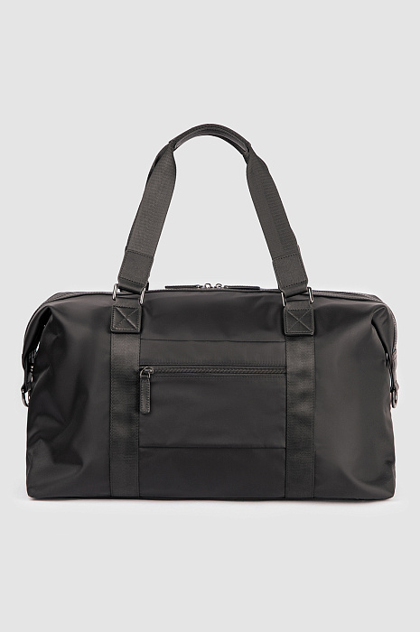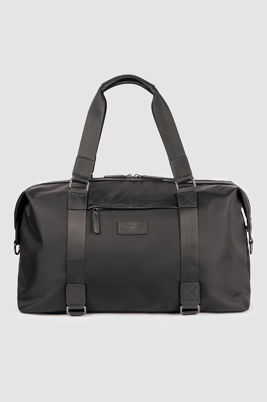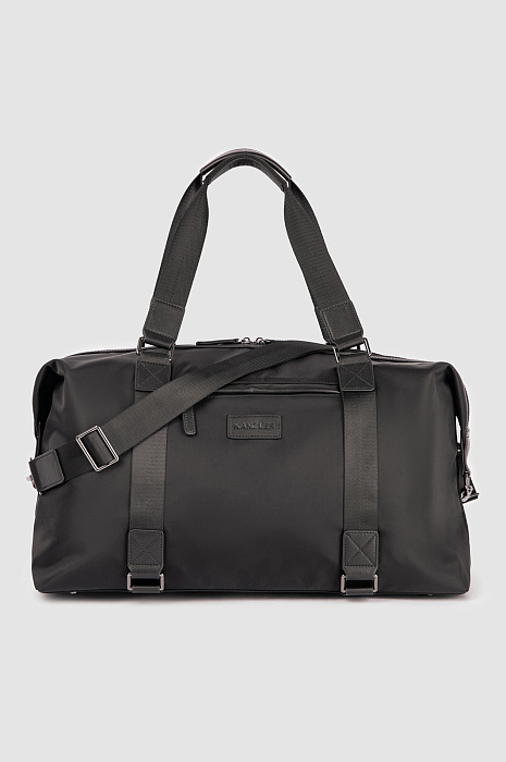 Дорожная сумка KANZLER из текстиля с кожаной отделкой — практичный аксессуар для недолгой поездки, командировки, путешествия и загородного уикенда. Универсальный черный цвет и современный лаконичный дизайн хорошо сочетаются с деловым, повседневным и спортивным стилями одежды. Основной материал — легкий и прочный текстиль из нейлона. Вставки и отделка из гладкой натуральной кожи придают модели завершенный благородный вид. Сумка закрывается на двухзамковую молнию. Внешний карман на молнии предназначен для мелочей, которые должны быть в доступе во время поездки. С помощью ручек и широкого съемного регулируемого ремня сумку можно носить в руке или на плече.