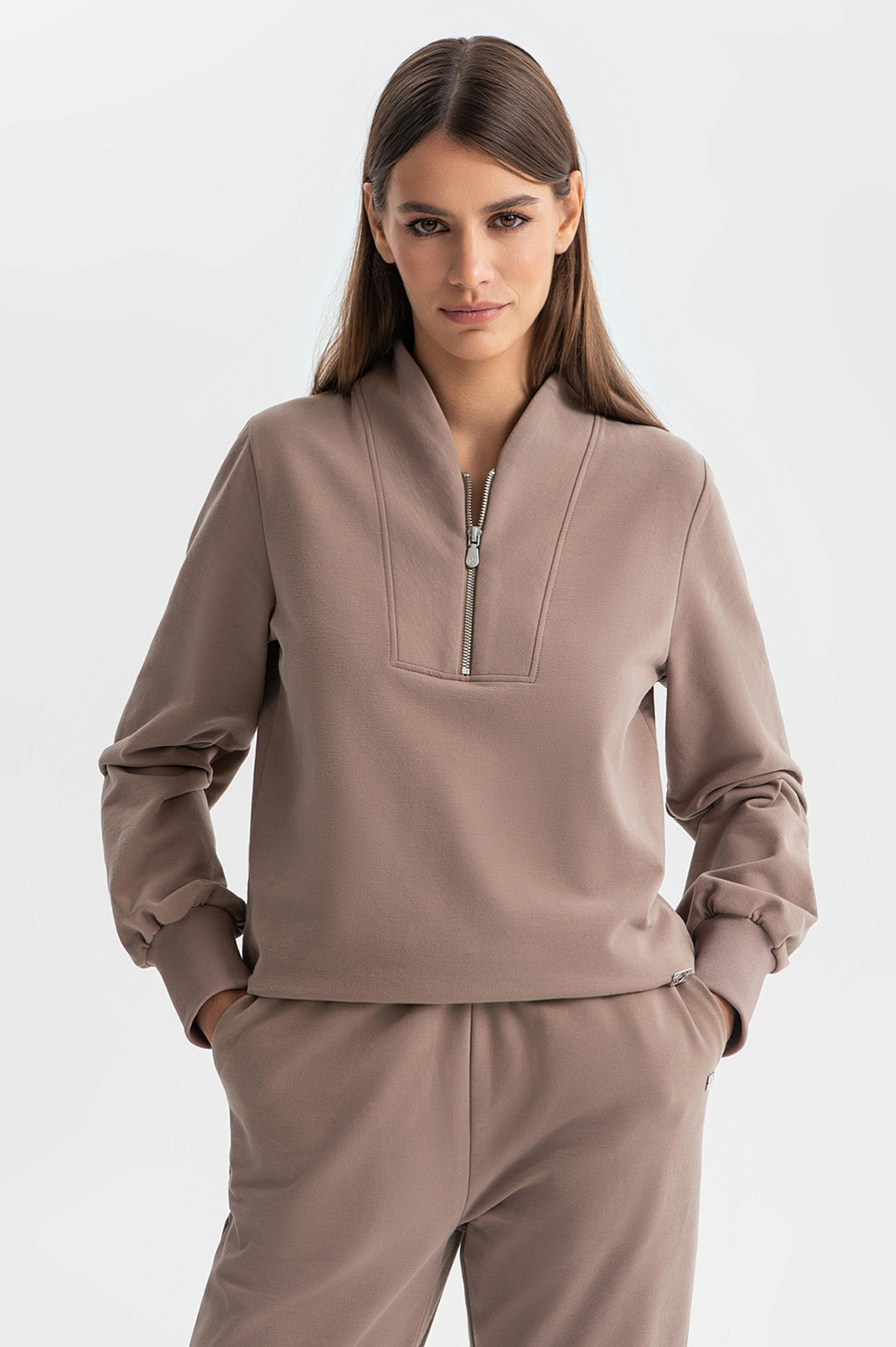 Толстовка из хлопка утепленная с начесом, цвет мокко, цена 3 495 руб. - купить в интернет-магазине KANZLER
