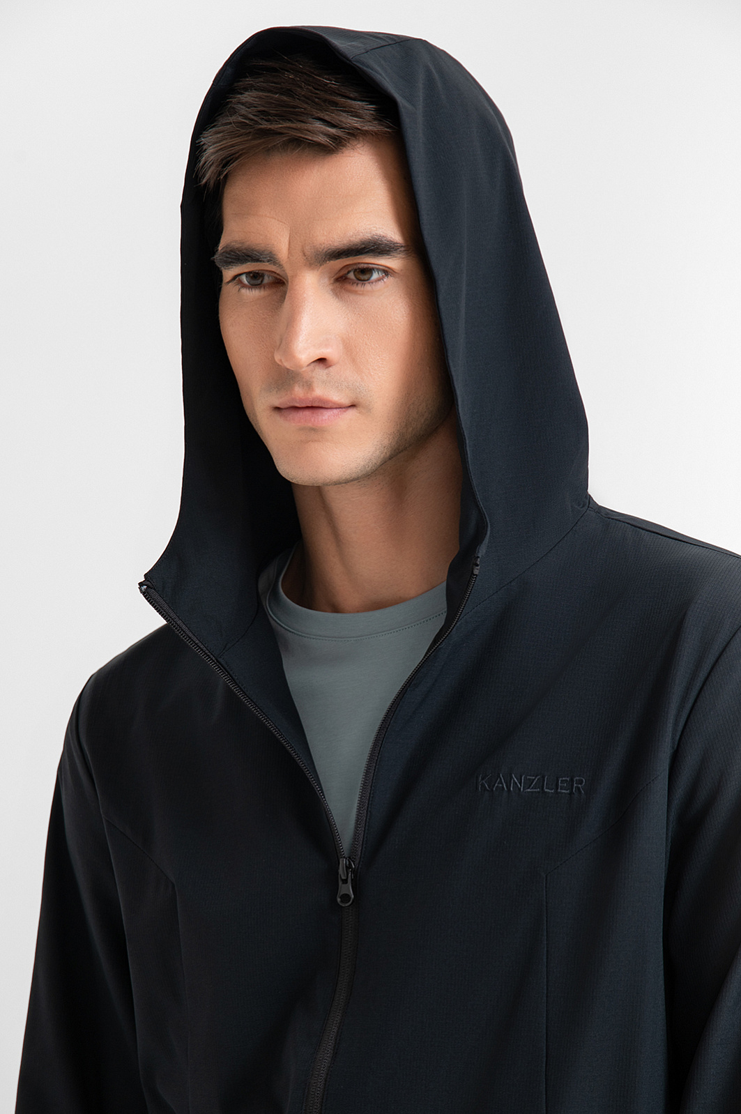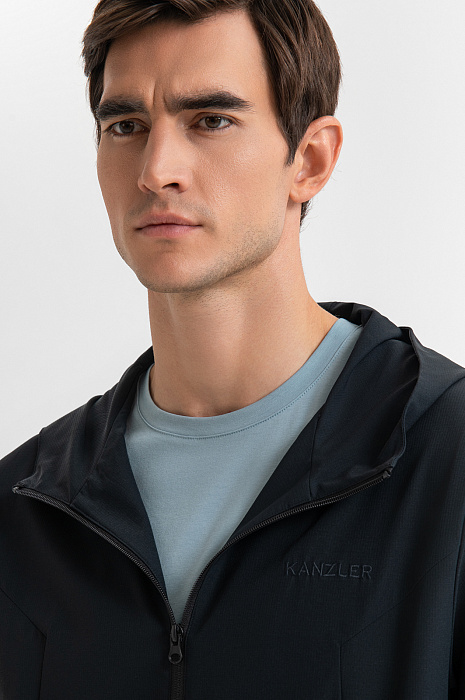 Чёрная толстовка KANZLER на молнии с капюшоном — пример продуманного минимализма в спортивной эстетике. Лаконичный дизайн без лишних деталей подчеркивает чистоту форм и универсальность модели. Капюшон защищает голову от ветра. Скрытые широкие резинки в манжетах и по низу создают аккуратную посадку. Модель выполнена из современного технологичного материала повышенной прочности (85% нейлон, 15% спандекс), который не сковывает движений и устойчив к износу, разрывам и влаге. Подкладка из мягкой ткани с добавлением воздухопроницаемого гипоаллергенного хлопка (35%) обеспечивает комфорт при носке. Параметры модели: рост 192, 101-76-97 Размер на модели: M