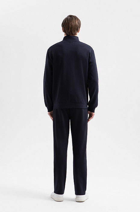 Тёмно-синяя толстовка KANZLER позволяет выглядеть на отдыхе стильно и элегантно. Для создания спортивного костюма её можно дополнить брюками KANZLER из такой же ткани. Мягкий, приятный на ощупь трикотаж дополнен на рукавах вставками из полиэстера, которые придают вещи структурированность и подчёркивают чистые линии кроя. Вышитый логотип на груди служит деликатным акцентом. Удобная молния с двумя бегунками позволяет открывать застёжку с любой стороны. Толстовка сшита из смесового хлопка. Натуральные гипоаллергенные волокна поддерживают ощущение свежести и сохраняют естественное тепло. Добавление полиэстера и эластана придаёт материалу прочность и пластичность.