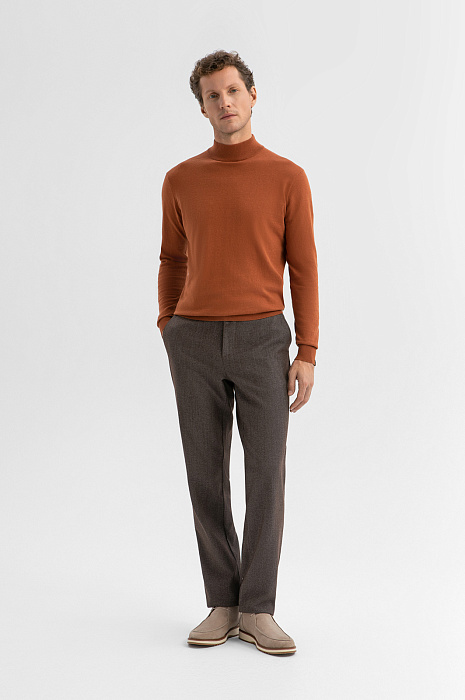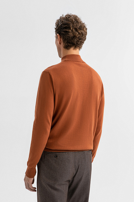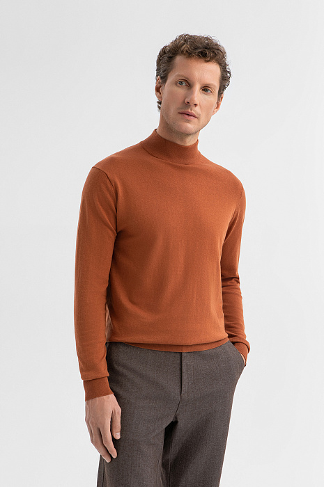 Водолазка KANZLER из хлопка и кашемира — стильная модель с характером. Приятный охристо-коричневый оттенок добавляет тепла и глубины в повседневный и офисный образы. В прохладные дни ее можно надеть под пиджак, куртку, плащ или пальто. Воротник-стойка и манжеты выполнены из эластичной трикотажной резинки — они аккуратно облегают и сохраняют форму даже при частой носке. Модель выполнена из благородного трикотажа на основе легкого гипоаллергенного хлопка (95%) с добавлением роскошного кашемира (5%). Это превосходный материал даже очень чувствительной кожи — мягкий, воздухопроницаемый, тёплый и тактильно комфортный. Параметры модели: рост 188, 97-82-92 Размер на модели: M